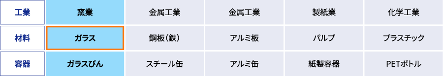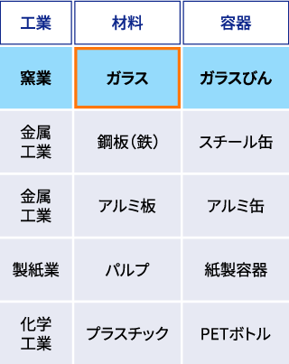 工業別の主な容器