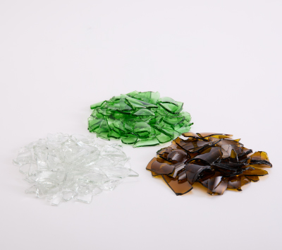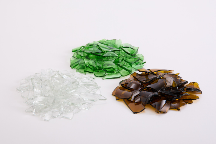 空きびんを細かく砕いて、