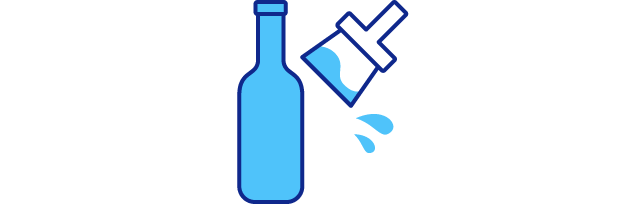 ガラスびんの強度を低下させないためには、ガラスびんの表面に微細な傷がつかないよう保護することが重要です。特に、洗浄して何度も繰り返し使われるリターナブルびんの軽量化では、洗浄ラインや充填ラインでガラスびん同士が接触した際の衝撃を和らげるために、びんの表面に樹脂やセラミックなどのコーティングを施しています。